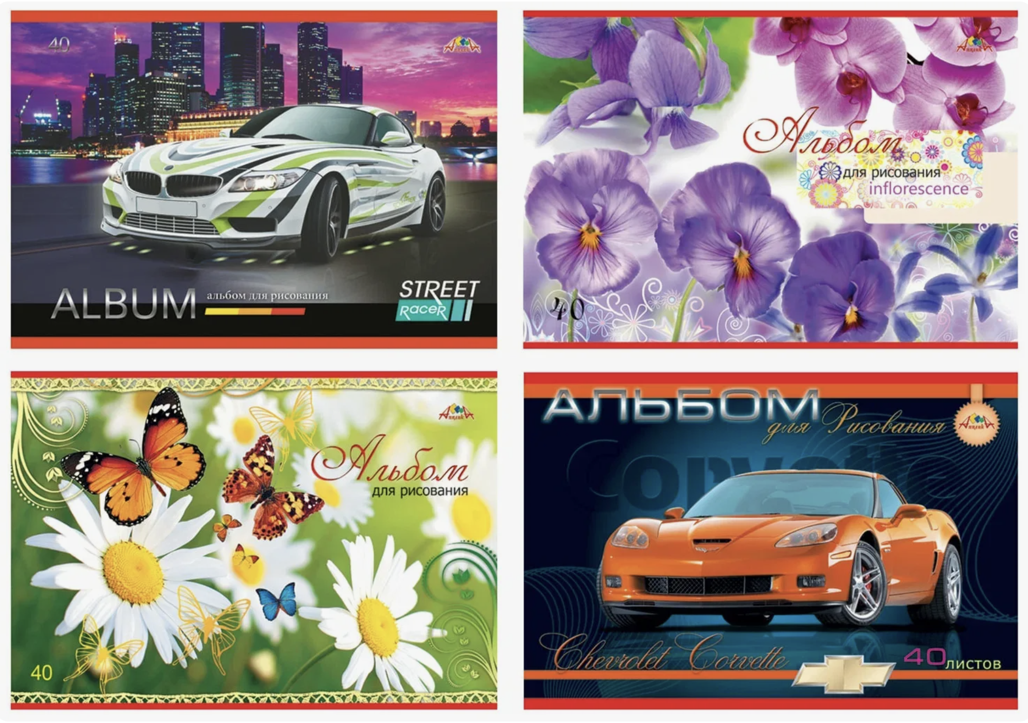 Альбом для рисования А4, 40 листов, на скрепке, в ассортименте