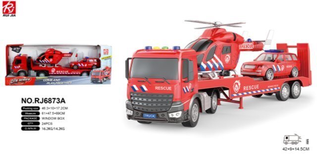 Автовоз инерционный +вертолет + машинка спасатели, 47*17см