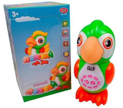 Детская развивающая игрушка Попугайчик, мягкий нос, 43 стихотворения, 24 сказки, 15 песен, 10 скороговорок, размер 16*26