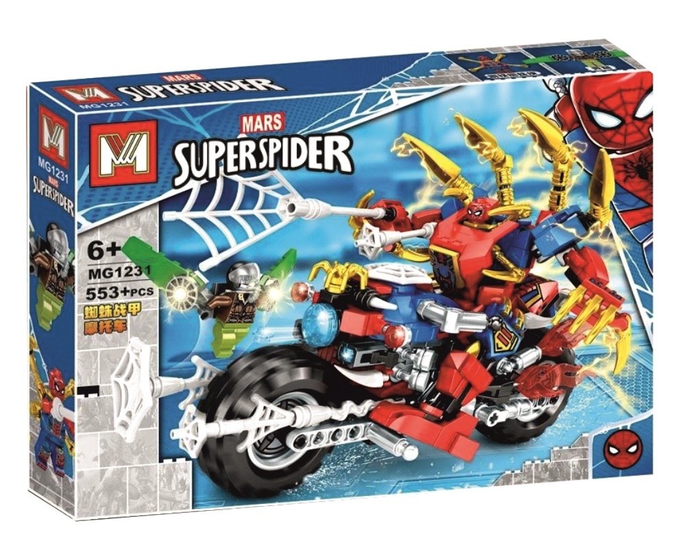 Конструктор Человек паук - Паук в Броне на Мотоцикле, 553 дет.
