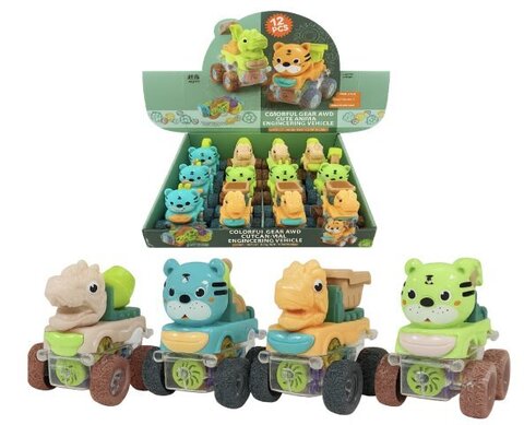 Машина Дино/Кот с Шестеренками и Светом, в уп 12шт. цена за шт.