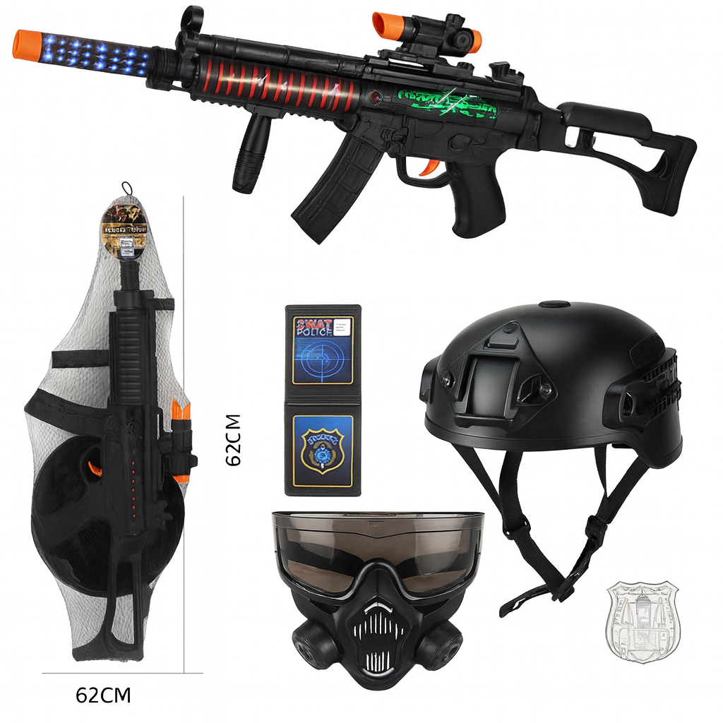 Набор полиция свето-муз автомат, значок, маска+шлем 61*24
