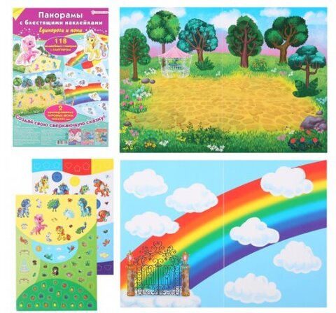 Панорама с наклейками Единороги и Пони 2 листа 400х285 мм