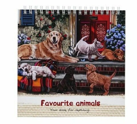 Скетчбук 40л. ЩЕНКИ НА КРЫЛЬЦЕ (С40-1725) 7БЦ. на гребне. глянц. ламинация 165х165мм